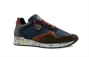 Sabata esportiva amb sola dobla i cordons de goma color blau i marro