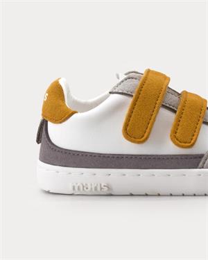 Esportiu Mustang Free amb velcro BAREFOOT color blanc i mostaça amb la lletra M al latral