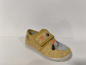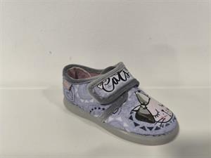 Sabatilla de bota amb velcro color nude amb cors i un gatet