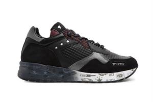 Esportiu amb la sola degradada ,cordons elàstics combinat marró i blau mari,i al damunt per l’empeine cuadros acolchats