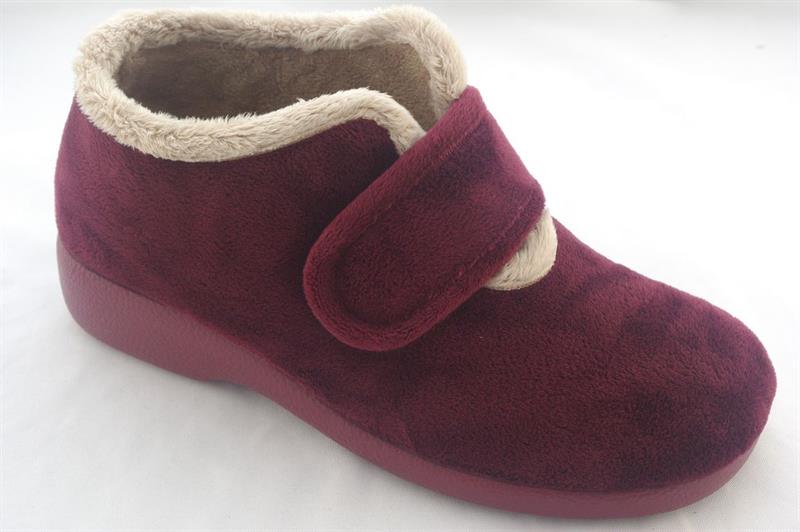 Sabatilla tancada amb velcro en bota, forrada de llana granate