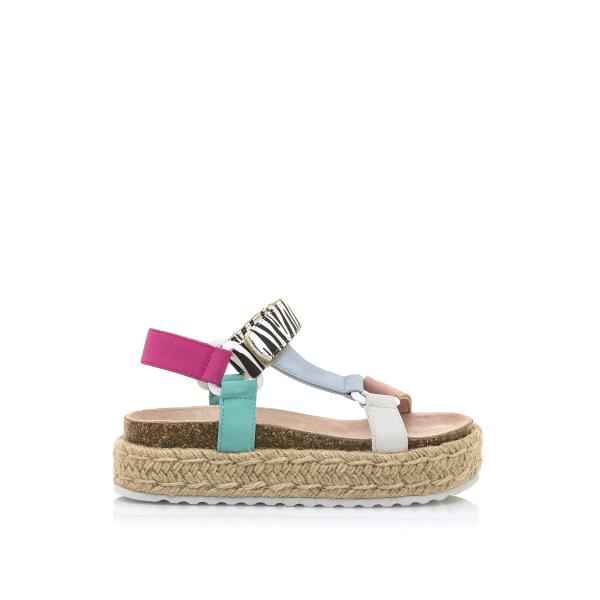Sandàlia multicolors lligada de velcro amb la sola de cànim