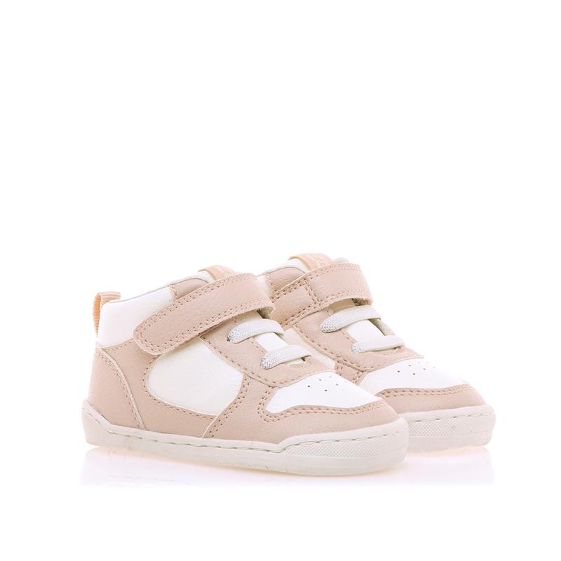Bota BAREFOOT RESPETUOSA amb velcro i elàstic color nude i blanc