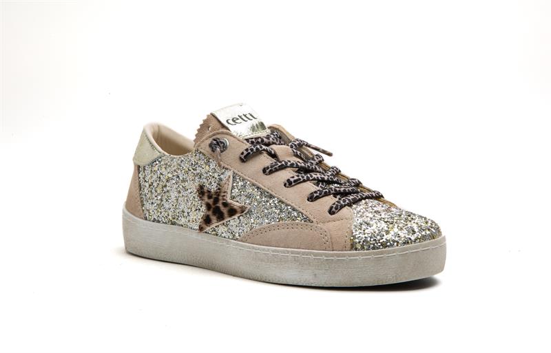Esportiu de glitter color plata i beig amb corodons elàstics