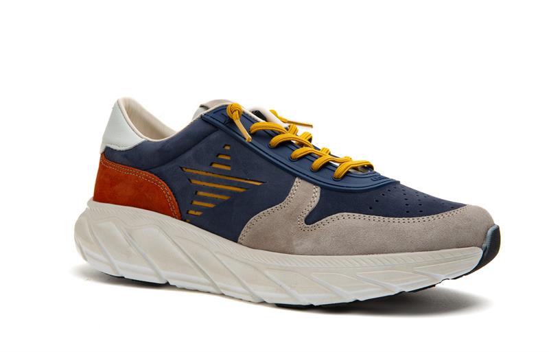 Esportiu amb cordons grocs elàstics color blau mari amb la estrella al lateral groga