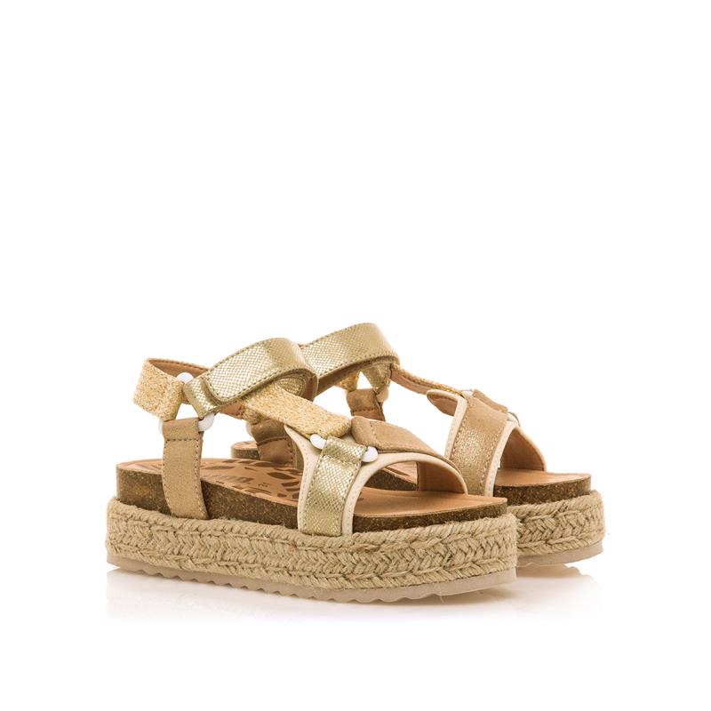 Sandàlia de plataforma alta color or i rafia natural