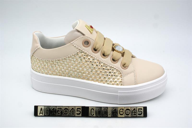 Esportiu de cordons amb adornos i cremallera al lateral color or i plataforma