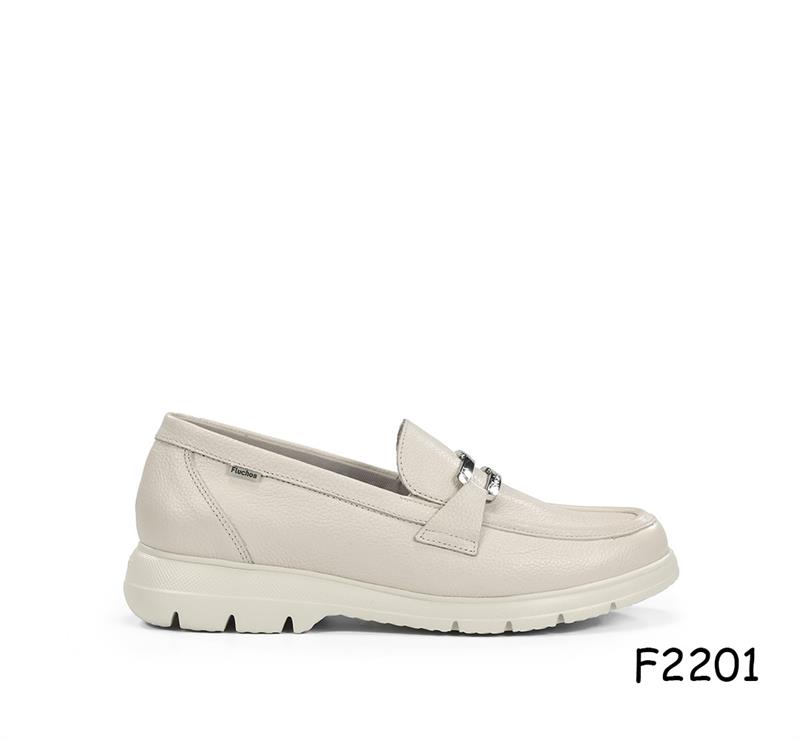 Sabata mocasi amb sola de goma color blanc lluent amb adorno al empeine