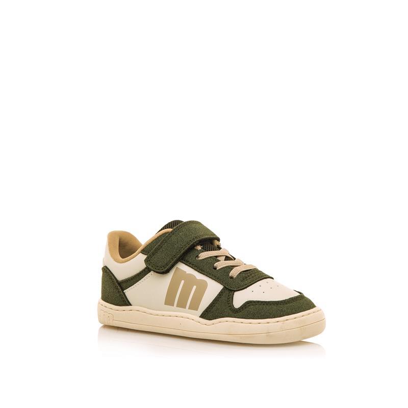 Sabata esportiva BAREFOOT de un velcro amb goma elàstica color kaki i blanc