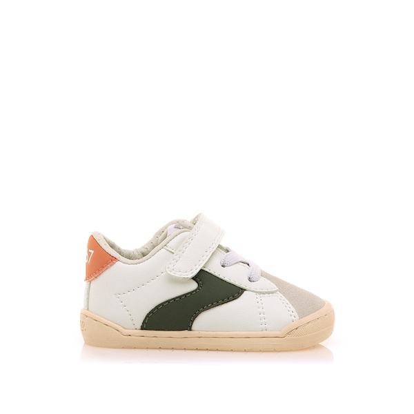 Esportiu Mustang Free de velcro BAREFOOT amb gomes blanc i la ratlla kaky