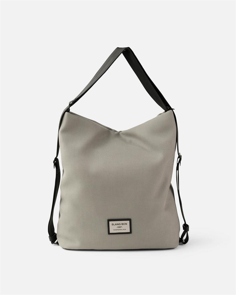 Bolso mochilla tipo hobo color plata amb material de roba de Slang