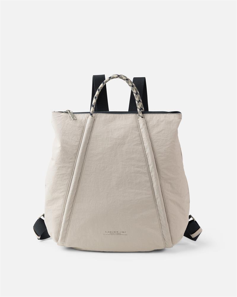 Mochilla de roba Slang color gris amb blau mari i la nansa de corda molt lleugera