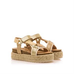 Sandàlia de velcro lligada amb la sola de cànim color blanc amb puntets negres