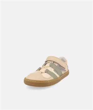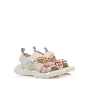 Sandàlia lligada amb velcro color beig,salmó i aiguamarina