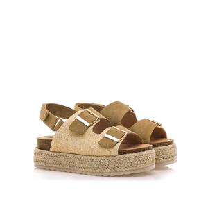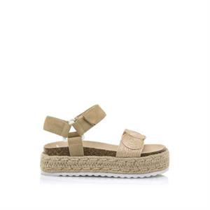 Sandàlia lligada amb velcro i la sola de plataforma color natural