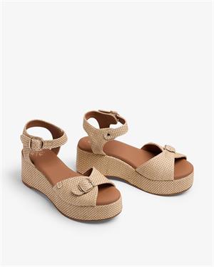 Sandàlia amb plataforma POPA lligada color beig de ràfia